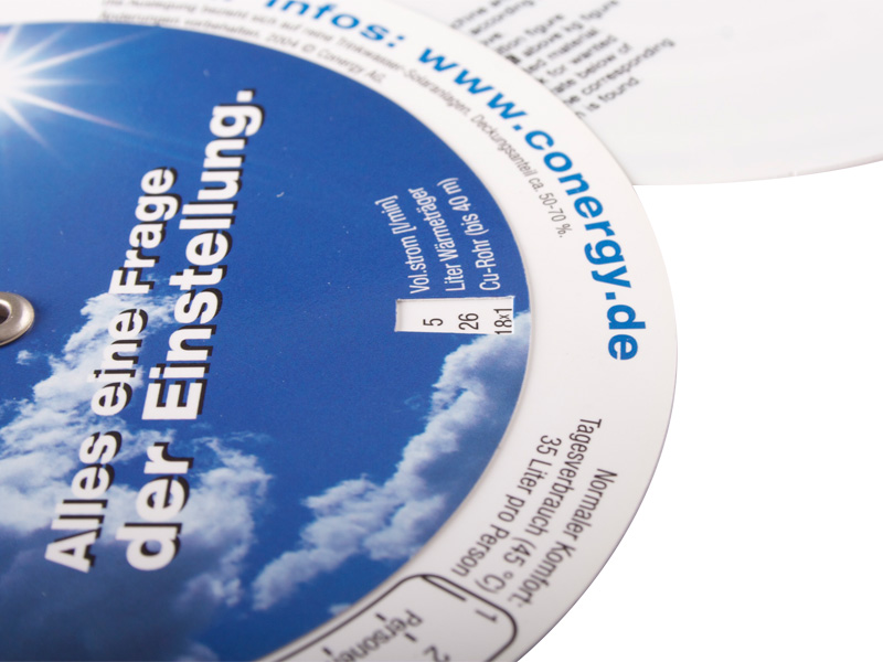 aus PVC-Hartfolie mit Siebdruck – zum Beispiel 2teilig, in der Mitte zusammengeöst.